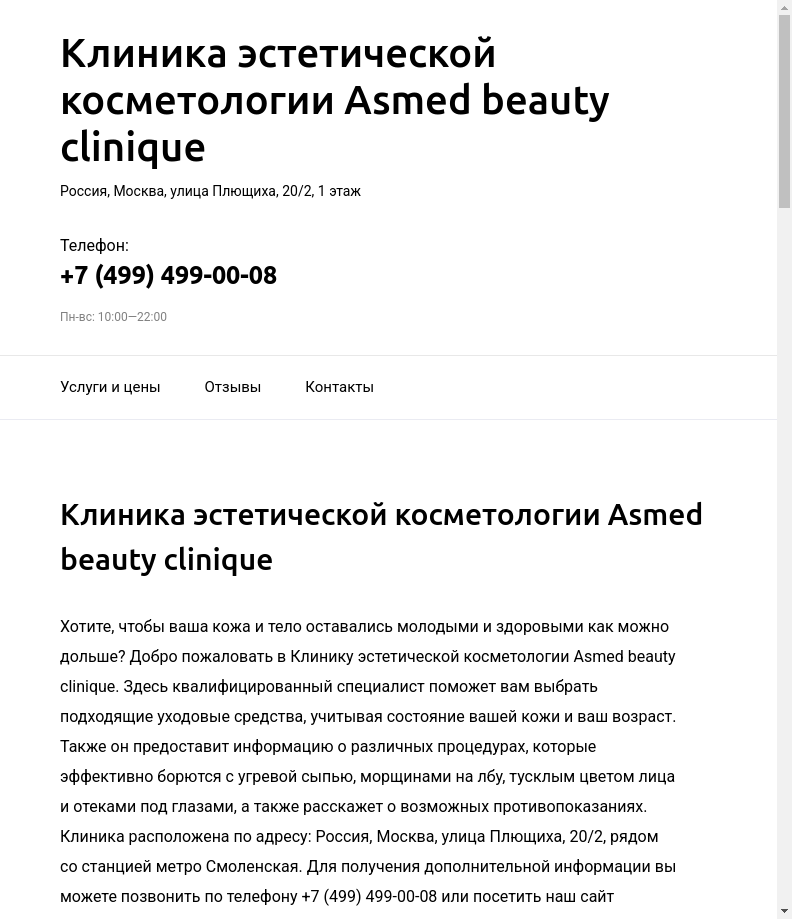 Технические SEO-метрики и пререндеринг для сайта asmedclinique.ru