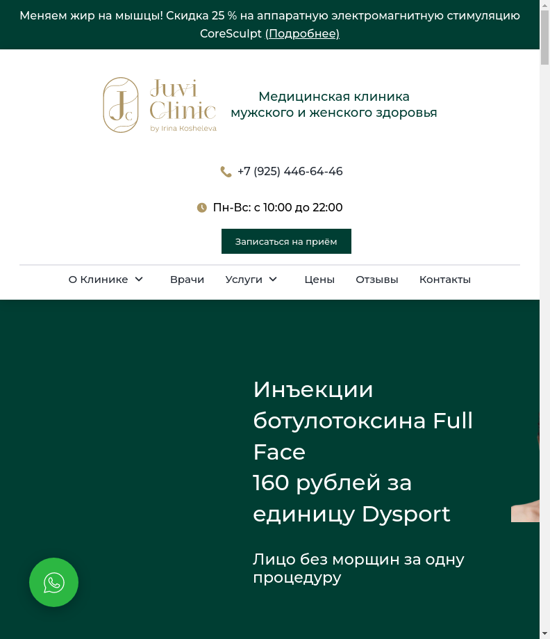Технические SEO-метрики и пререндеринг для сайта juviclinic.ru