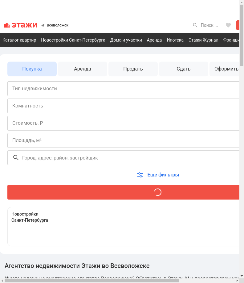 Технические SEO-метрики и пререндеринг для сайта vsevolozhsk.etagi.com