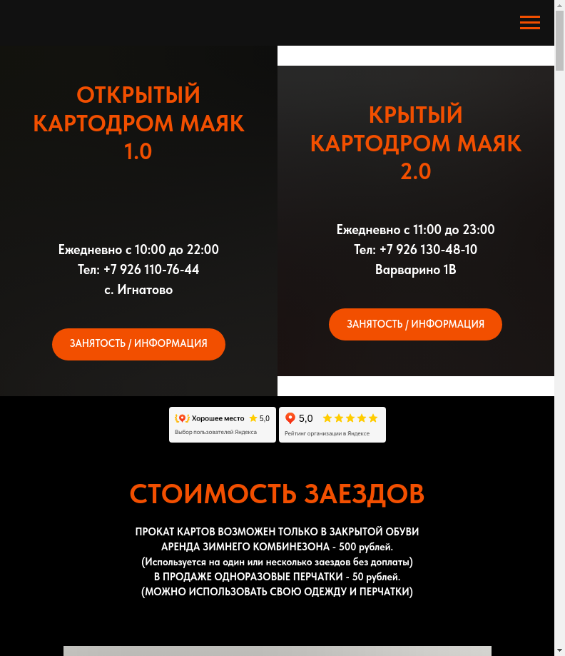 Технические SEO-метрики и пререндеринг для сайта www.mayak-karting.ru